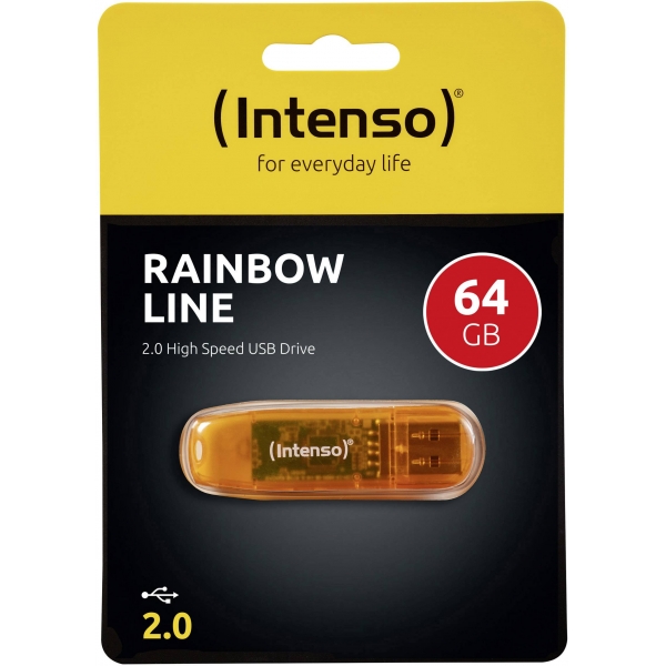 ΣΤΙΚΑΚΙ ΜΝΗΜΗΣ INTENSO 64GB USB 2.0 RAINBOW LINE orange