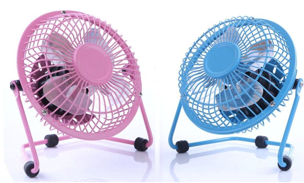 Μεταλλικός ανεμιστήρας που τροφοδοτείται από θύρα USB για να σας δροσίζει τις ζεστές ημέρες του καλοκαιριού είτε βρίσκεστε στο σπίτι ή στο γραφείο.